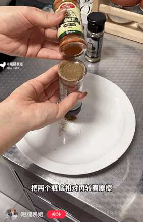 图源小红书@Freya 6、辣椒粉、胡椒粉瓶口容易受潮堵住倒不出粉,但你们注意过瓶底凹凸的这一圈吗?把两个瓶底相对,摩擦转圈就能轻松撒出粉了。 |
