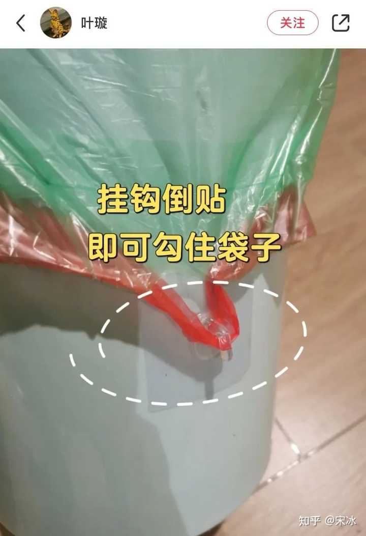 图源小红书,来源见账号 25、挂钩的用法太多了,除了挂各种厨房卫生间的零碎物品外,我认为最实用的一种:倒着贴在垃圾桶外面。 |