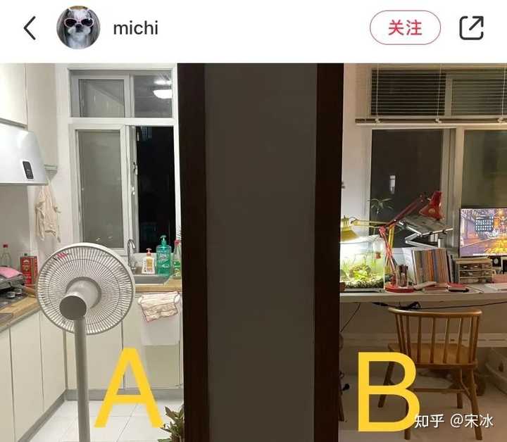 图源小红书@乌猫阿fan 17、梅雨季节室内比室外闷热时,可以试试用风扇舒适降温:在A房间放电扇对着窗吹(离窗0.5-2m之间),B房间就能感受到凉风,接着室内温度就慢慢降低了~ |