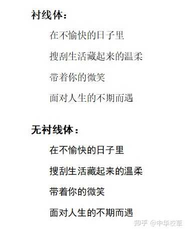 二、为什么用仿宋? 首先,现在的印刷技术已经不需要为了印刷去改变字体样式了,大部分还是为了设计、美观需要。 至于为什么要使用仿宋,先来看下几大字体的对比。 (一)楷体。作为早期字体,笔画接近于手写体,是直接由古代书法发展而来的,字体端正、匀称。楷体在传统作品中运用的非常广,但是楷体是不会作为主标题的文字选择。一般用于小学课本及幼教读物,便于孩子们模仿与模写。在中、小号标题,作者的署名等使用,以示与正文字体相异而突出。但用楷体作标题时,至少要比正文大一个字号,否则标题字会显得比正文还小。 |