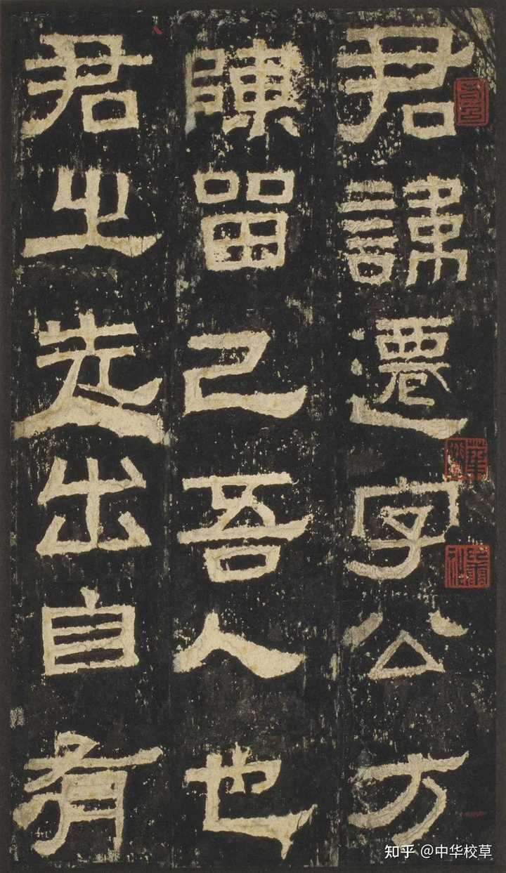 字形扁方左右分展隶字改以横向(左右)取势,造成字形扁方。起笔蚕头收笔雁尾隶书用笔上的典型特征,特别是隶字中的主笔横、捺画几乎都用此法。 |